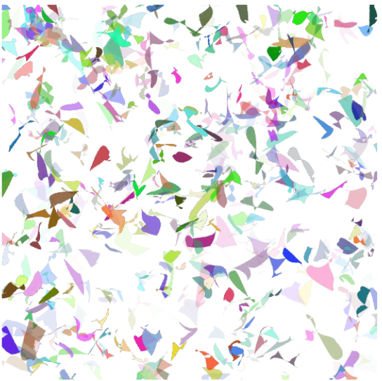 When num_segments = 2, two Bézier curves are generated, typically sharing the same origin. As num_segments increases, the complexity of each stroke increases. For values between 1 and 30, a large number of curves can be generated, significantly increasing stroke density on the canvas Thus, num_segments directly influences stroke flexibility and geometric complexity.