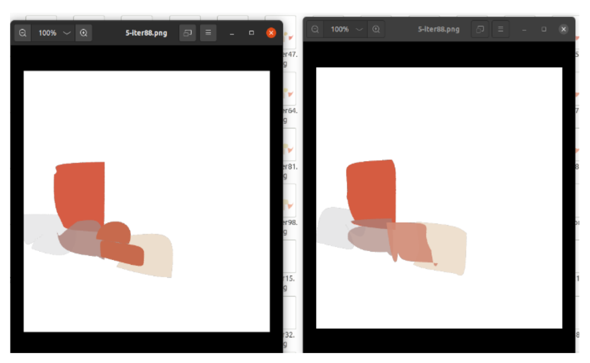 The reason is straightforward: a larger number of initial strokes allows the model to approximate the image more effectively and converge faster. These strokes are initialized on a white canvas. With only 10 initial strokes, for example, convergence becomes very difficult.