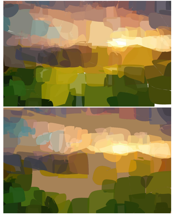 - The output is perceptually meaningful but not always pixel-wise close to the original image. -Interestingly, the solid color effect could be advantageous for real robotic painting, where transparency and subtle blending are harder to reproduce.