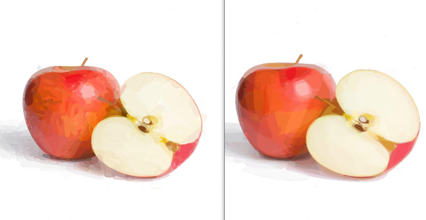 - The difference is particularly visible in the half-apple example.